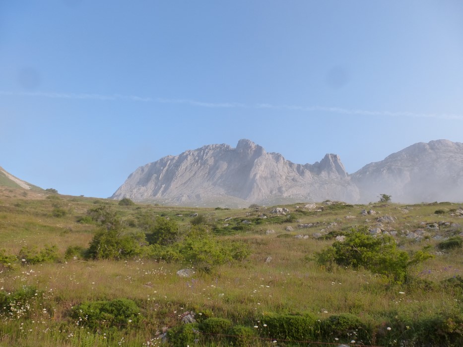 En su flanco meridional presenta una ancha muralla de caliza compacta con una altura media de 200 m. En Peñas del Prado se conjugan vías abiertas desde abajo con muy poco equipamiento, junto ha vías abiertas desde arriba en placas compactas de gran belleza, con el equipamiento justo para ser seguras, pero que hay que completar con un juego de fisureros y algunos friends, para ir tranquilos.