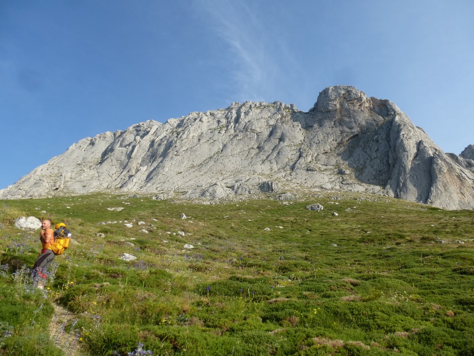 Poco a poco nos acercamos a la pared. La Negra es el el espolón del centro.