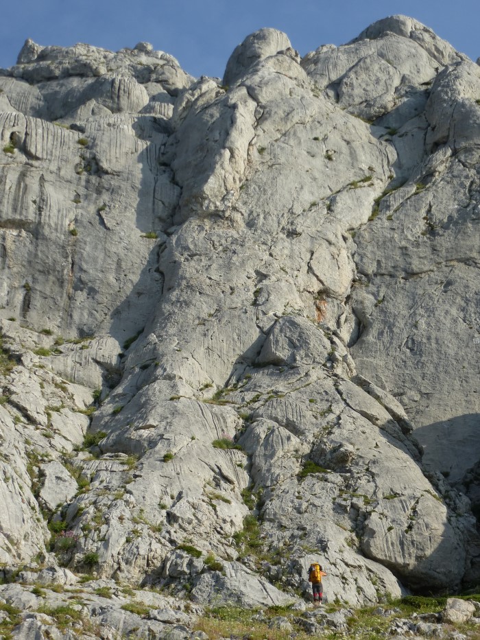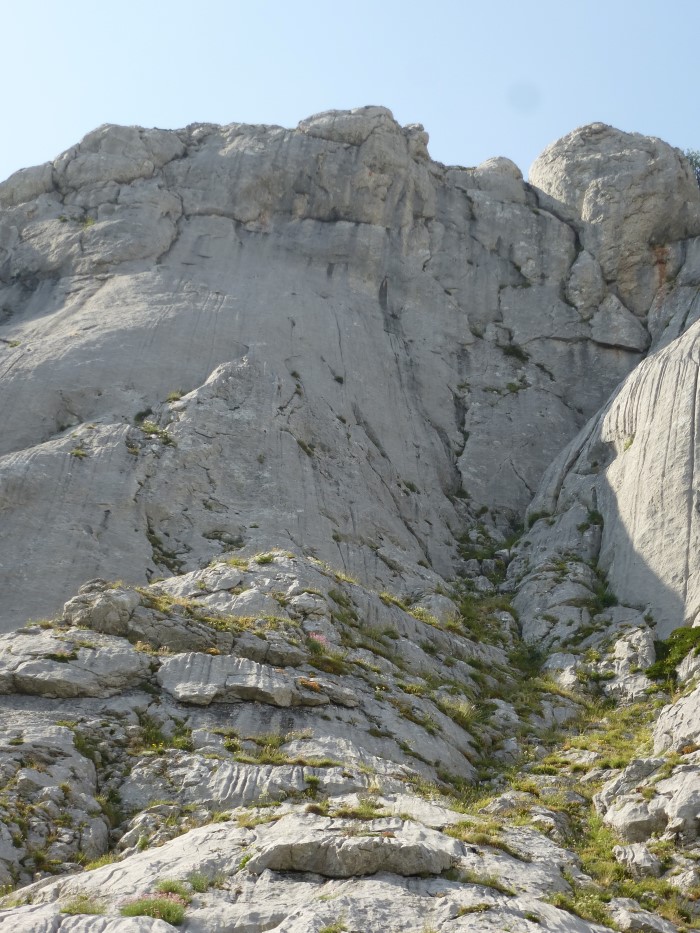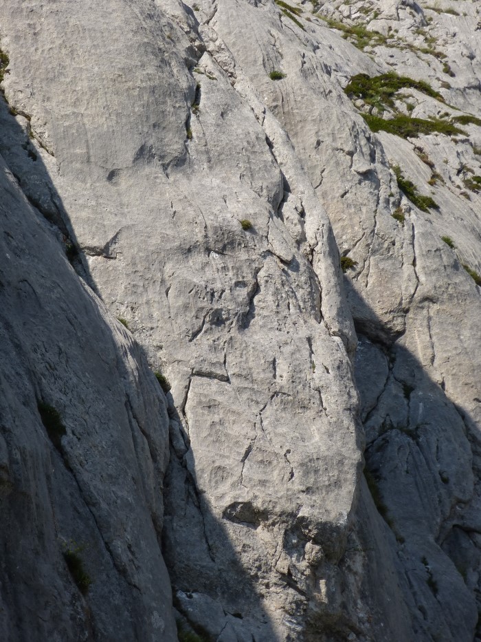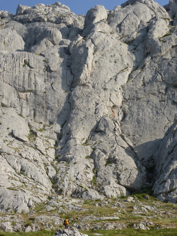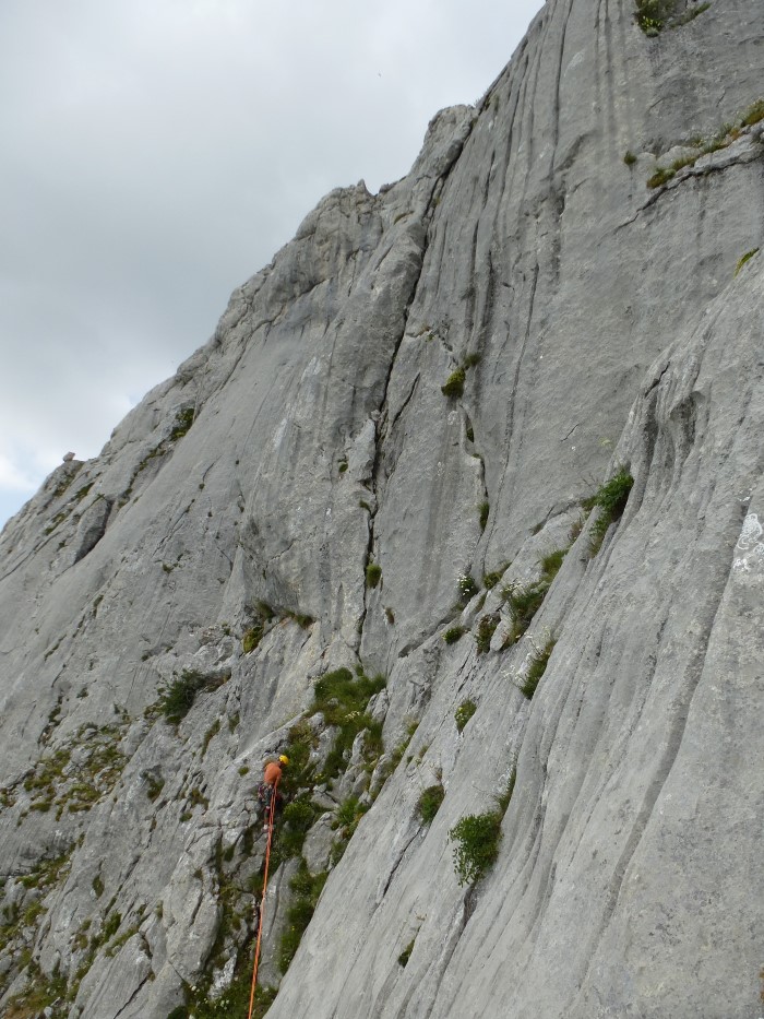 Seguimos por la repisa dirección Oeste, hasta dar con el comienzo de la gran fisura de no Caliza na Galiza.