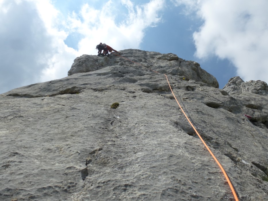 Después de la sección del 6c+, viene un espolón de IV+ muy bonito y aéreo.